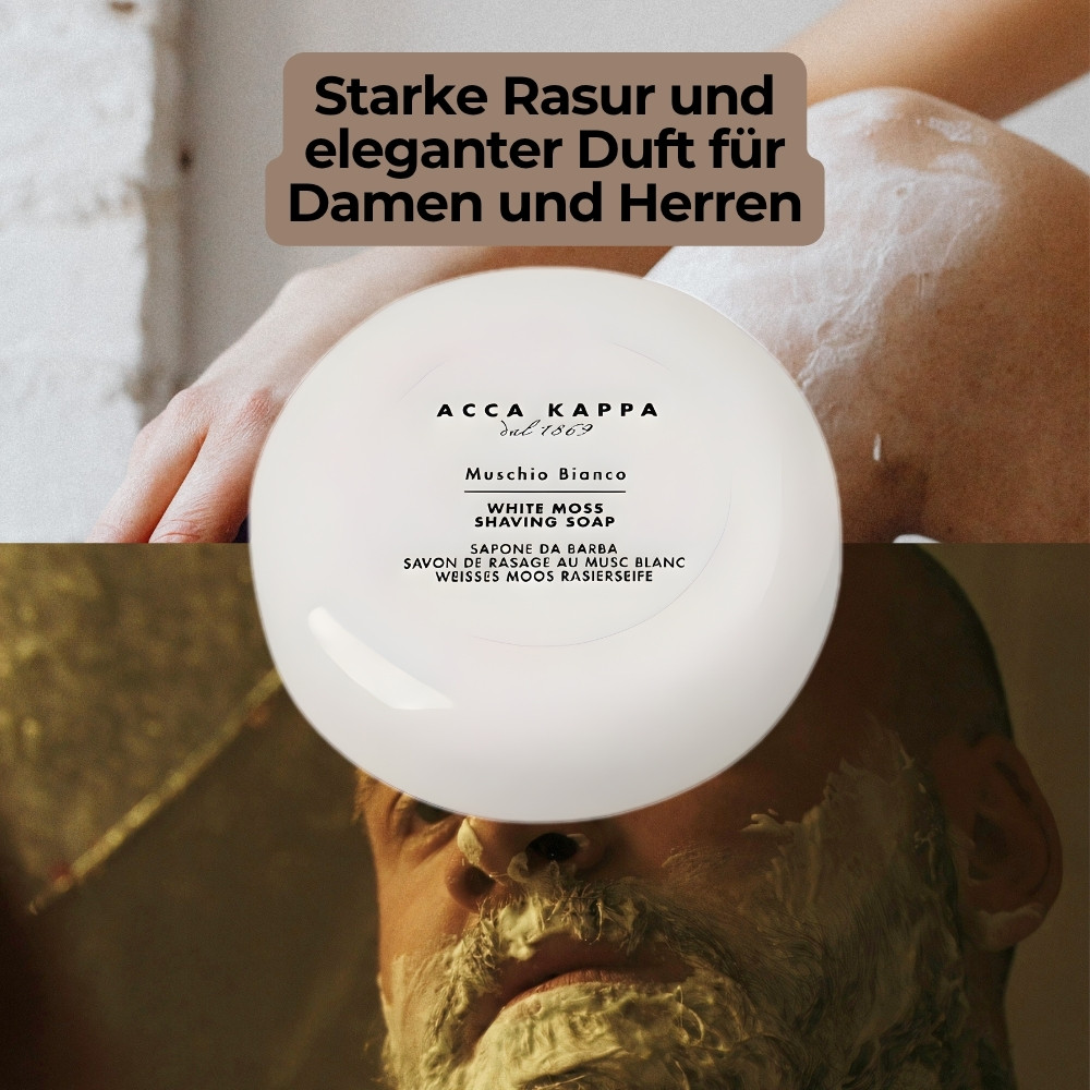 „Rasierseife Muschio Bianco, die Eleganz der Reinheit im Duft“
