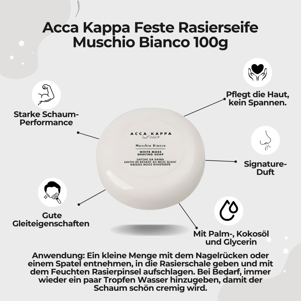 Acca Kappa Rasierseife Muschio Bianco 100g – Frische und Pflege in Perfektion