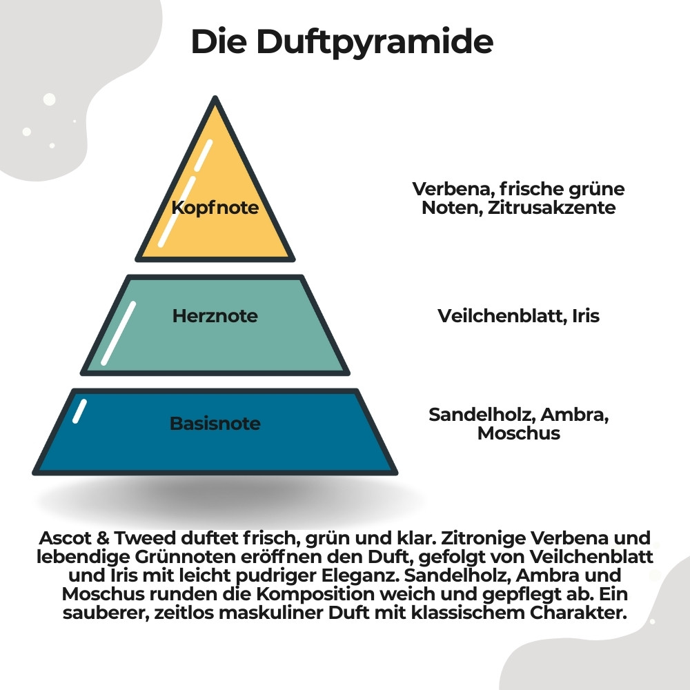 Dazu kommt ein Duft, der wie frisch gewaschene Eleganz funktioniert: grüne Zitrusfrische, eine aufgeräumte, leicht pudrige Mitte und eine weiche Wärme im Hintergrund. So kann das Aftershave Ascot & Tweed die Rasierseife perfekt abrunden.