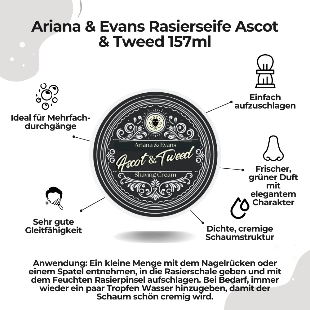 - 1x Ariana & Evans Rasierseife Ascot & Tweed 157ml
