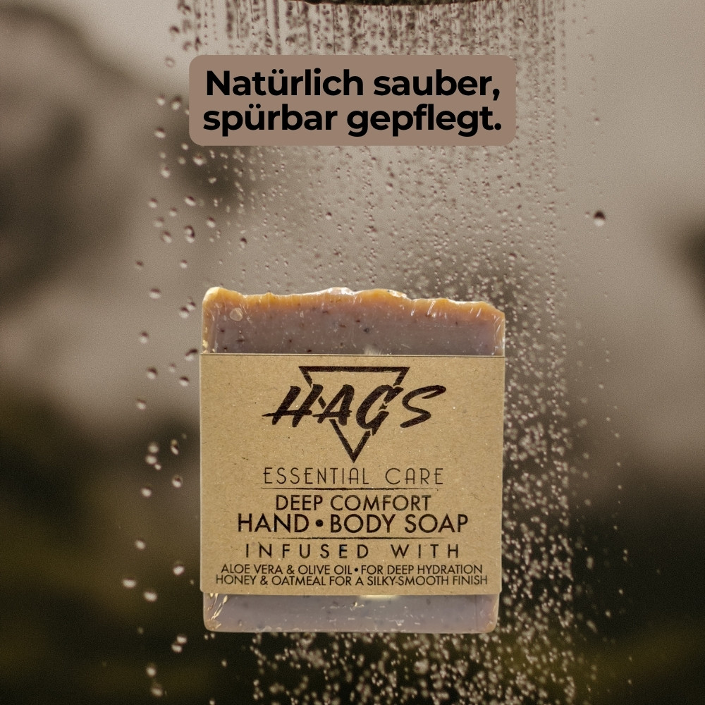 Feste Seifenstücke wie die Körperseife Rick Or Treat sind nicht nur umweltfreundlicher als Duschgels, sondern auch pflegeintensiver, ergiebiger und stilvoller im Badezimmer. HAGS bietet mit seiner Essential Care Linie Seifen, die sich durch langanhaltende Qualität & Erstklassige Inhaltsstoffe auszeichnen.