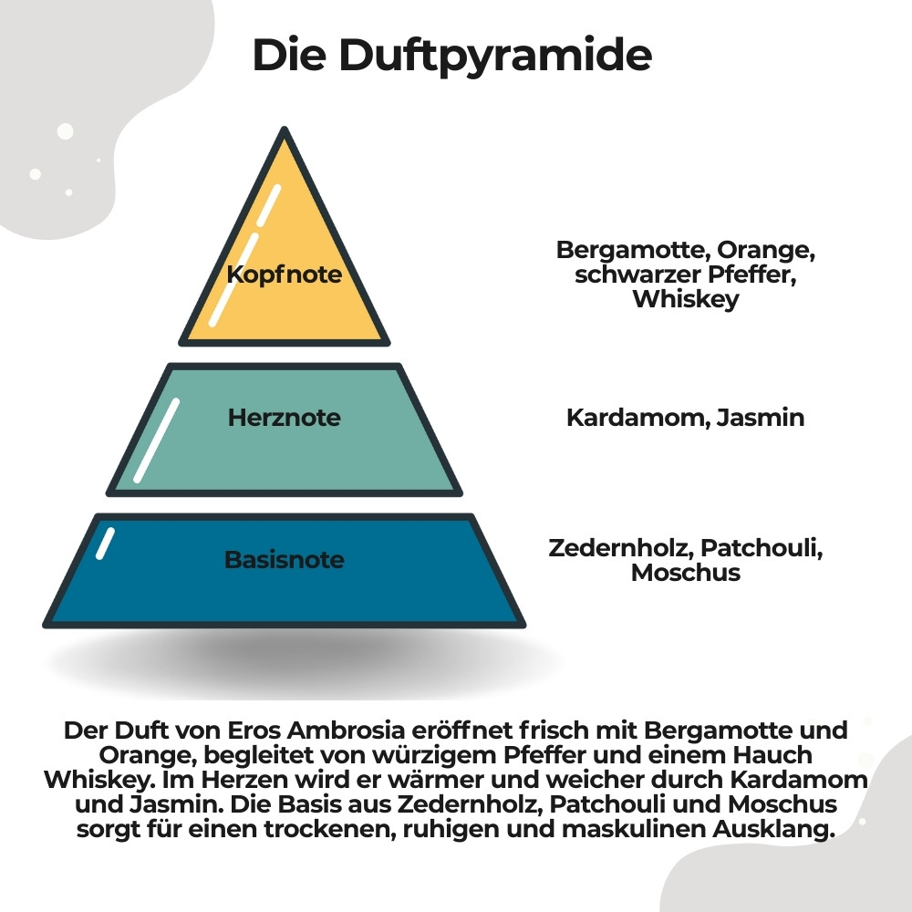 Im Tiegel ist der Duft der Rasierseife Eros Ambrosia klar wahrnehmbar und zeigt bereits seine frische, würzig warme Richtung. Beim Aufschäumen wird das Duftbild runder und ausgewogener, präsent genug, um während der Rasur wahrgenommen zu werden, dabei alltagstauglich und nicht dominierend.