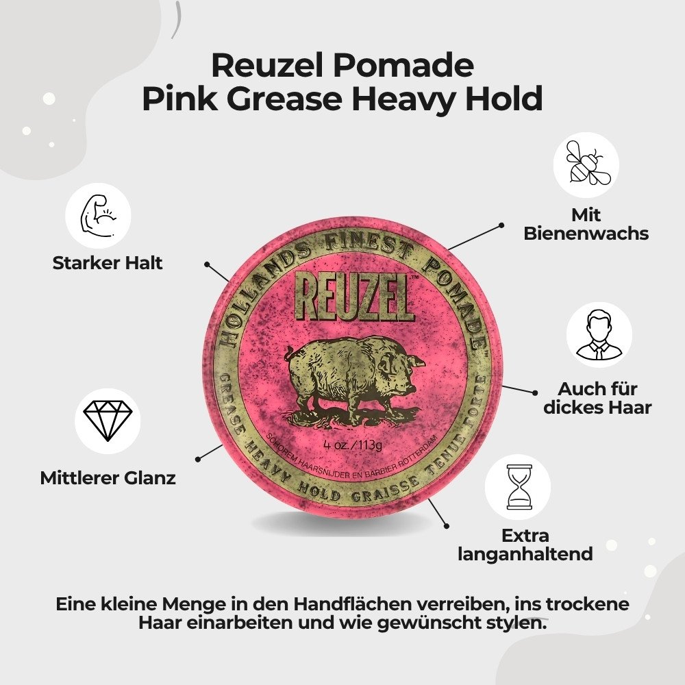 Reuzel Pomade Pink Grease Heavy Hold 113g, Starker Halt mit Bienenwachsbasis